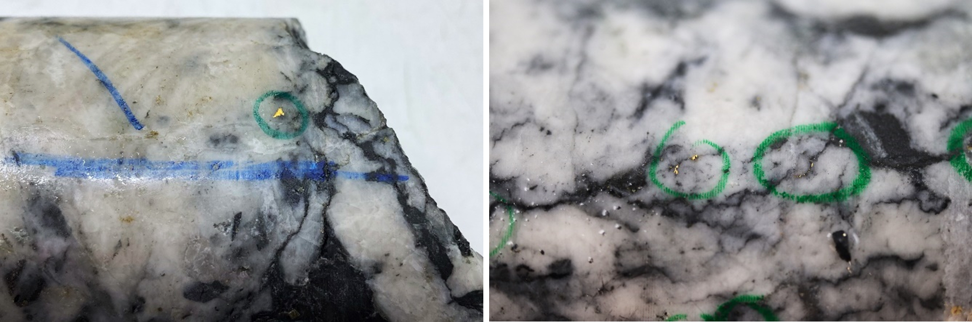 ^Note that these photos are not intended to be representative of gold mineralization in NFGC-22-989 and NFGC-22-865.