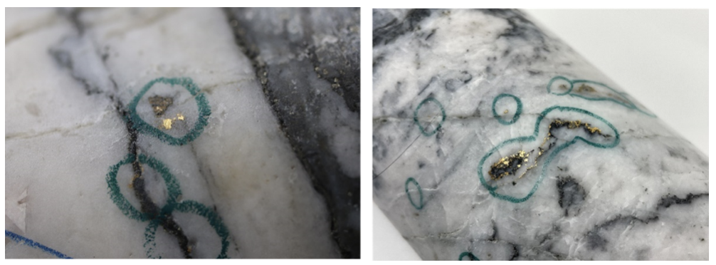 True widths of the intercepts reported in this press release have yet to be determined but are estimated to be 60% to 95% of reported core lengths. Infill veining in secondary structures with multiple orientations crosscutting the primary host structures are commonly observed in drill core which could result in additional variability in true width. Assays are uncut, and composite intervals are calculated using a minimum weighted average of 1 g/t Au diluted over a minimum core length of 2m with a maximum of 2m consecutive dilution. Included high-grade intercepts are reported as any consecutive interval with grades greater than 10 g/t Au.